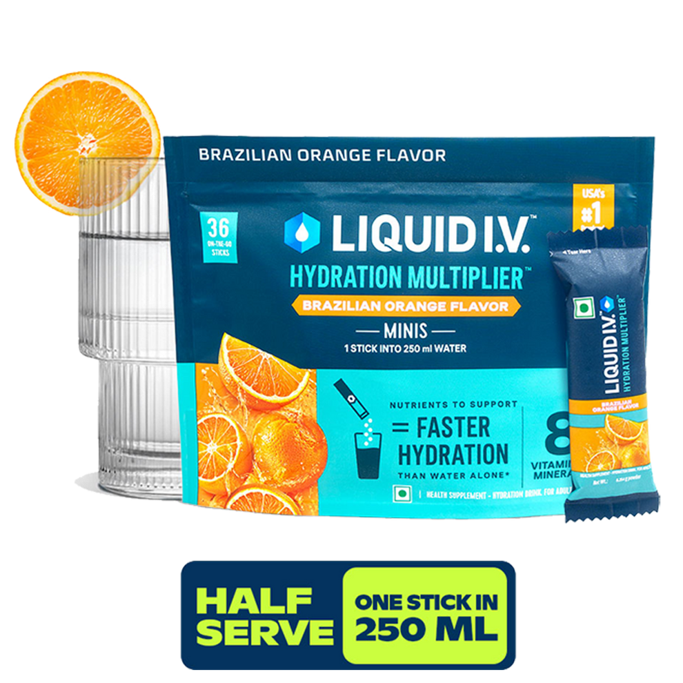 Liquid I.V.™ Hydration Multiplier™ minis is a great tasting, hydration drink that hydrates faster and more efficiently than water alone. 2 sticks contains 3x the electrolytes of the leading sports drink* with 8 essential vitamins and minerals. Liquid I.V.™ Hydration Multiplier™ helps support muscle function with vitamin B6 and potassium. It is naturally caffeine free and naturally gluten free with no artificial sweeteners and colours. It is scientifically formulated to help restore electrolytes imbalance that may occur through performance, heat, travel & adventure. At Liquid I.V.™, our impact work is built into the brand's dna. We have pioneered change in three key areas directly connecting to our brand purpose: clean water access, hydration aid and sustainability. We support equitable access to clean and abundant water. Every time you buy Liquid I.V.™, you support our partnerships with leading global water, humanitarian, and community-based organizations, expanding clean water access.