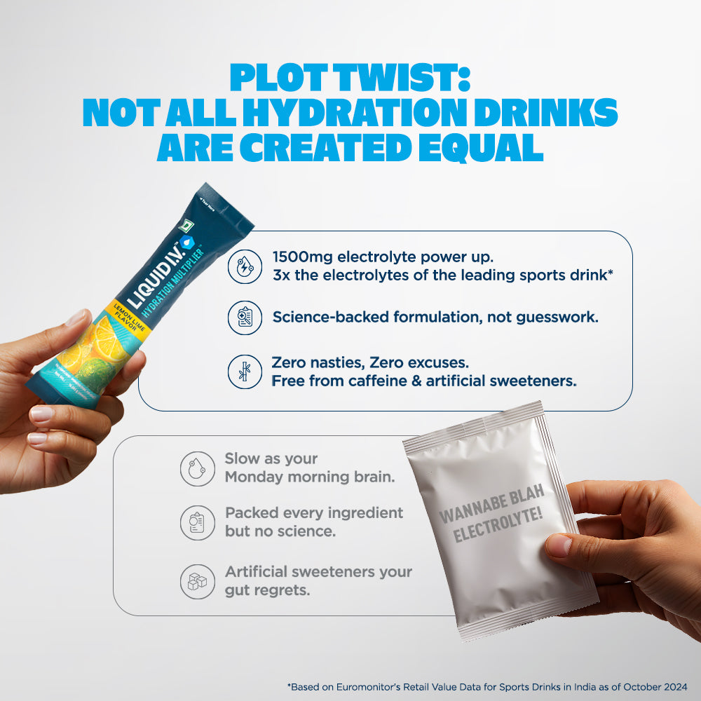 Designed to ensure you don’t miss a wedding function, you enjoy a series of parties and your run for a personal best. On popular demand Liquid I.V.™ brings The Ultimate Hydration Blockbuster – with refreshing lime + tangy berry for faster recovery. Powered by LIV HYDRASCIENCE™, our science-backed formula contains an optimized ratio of electrolytes, essential vitamins, and clinically tested nutrients.